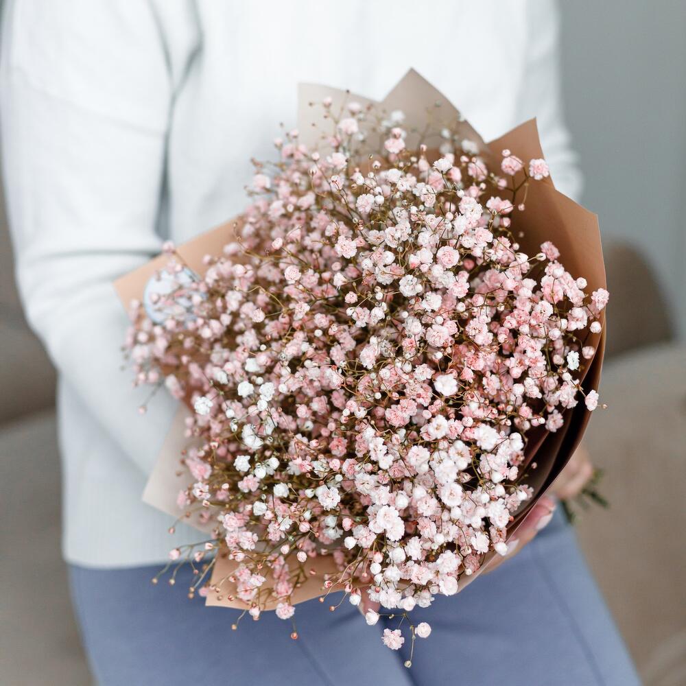 Гипсофила – 7 шт.Упаковка корейская пленка – 2 шт.Лента атласная – 1 шт.