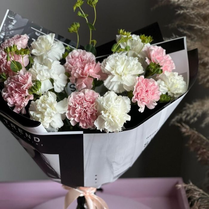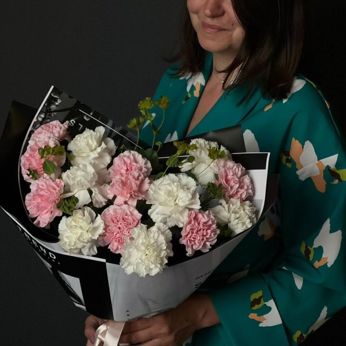 Гвоздика сортовая – 15 шт.Буплерум – 2 шт.Авторская упаковка – 1 шт.памятка по уходу – 1 шт.крафт конверт – 1 шт.