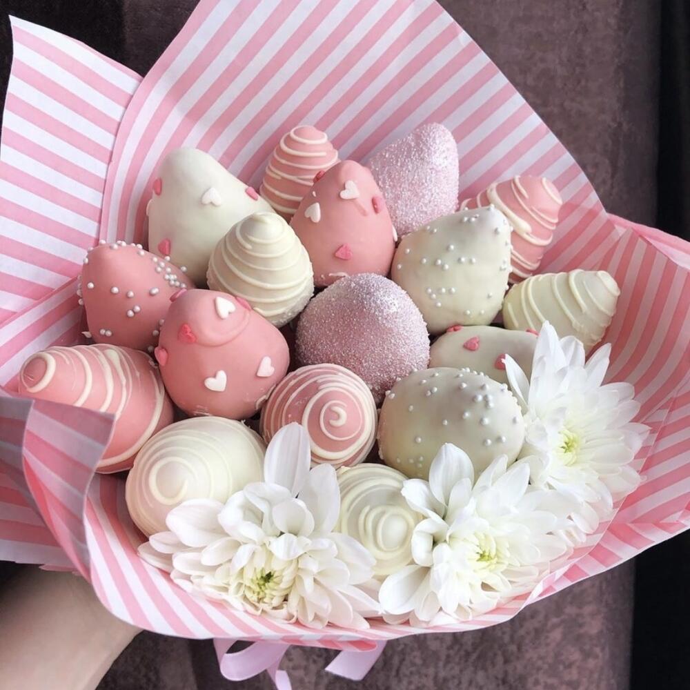 Букет с клубникой ” Розовое облако “