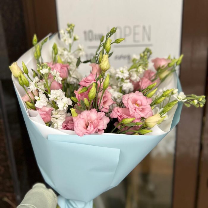 Букет с маттиолой и лизиантусом