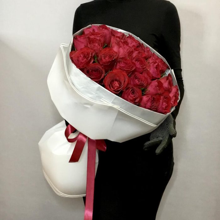 Лента атласная – 1 шт.Тишью – 2 шт.Роза 40 см – 35 шт.Пленка матовая – 2 шт.