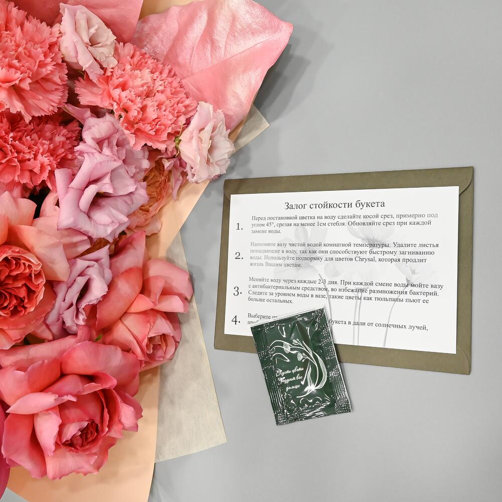 Категорий: Гвоздики, Кустовые розы, Лизиантусы, Пионовидные розы, Розы